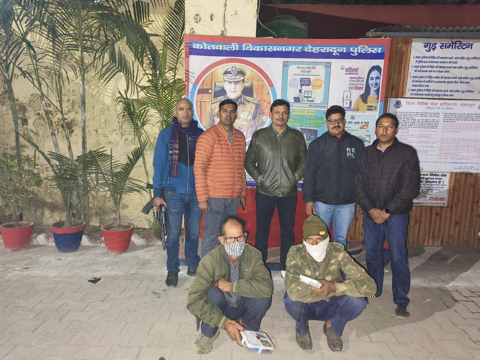 एसएसपी एसटीएफ नवनीत सिंह भुल्लर द्वारा जानकारी देते हुए बताया गया कि उत्तराखण्ड एसटीएफ को बीते दिनों सूचना मिली थी कि विकासनगर देहरादून क्षेत्र में वन्य जीव जन्तुओं के अंगो तथा भालू पित्त की अवैध तस्करी हो रही है, जिसे एसटीएफ द्वारा अपने स्थानीय सूत्रों से मेैनुवली डेवलप किया गया। बताया कि आज सुबह विकासनगर से यमुनोत्री जाने वाले रास्ते हतीयारी ग्राम से पहले बाइक सवार दो लोगों को गिरफ्तार किया गया। पूछताछ में उन्होन अपना नाम भगवान सिंह रावत पुत्र सूरज सिंह निवासी ग्राम कांडेयू थाना विकासनगर देहरादून व जितेंद्र सिंह पुंडीर पुत्र स्वर्गीय गोविंद सिंह निवासी ग्राम मदरासु थाना विकासनगर जनपद देहरादून बताया। एसटीएफ ने भगवान सिंह रावत के कब्जे से 1 भालू पित्त व जितेन्द्र सिंह पुंडीर के कब्जे से 5 नाखून जंगली जानवर के बरामद किये। भालू पित्त एवं जंगली जानवरों के अंगों को वन्यजीव जन्तु संरक्षण अधिनियम की पहली अनुसूची में रखा गया है इसका शिकार करना एक गम्भीर अपराध है, पकड़े गये तस्करों के खिलाफ थाना विकासनगर में वन्यजीव अधि. (वाइल्ड लाइफ एक्ट) के तहत मुकदमा दर्ज किया गया। जिन्हे न्यायालय में पेश कर जेल भेज दिया गया है। भालू पित्त का वजन (155 ग्राम) बताया जा रहा है।