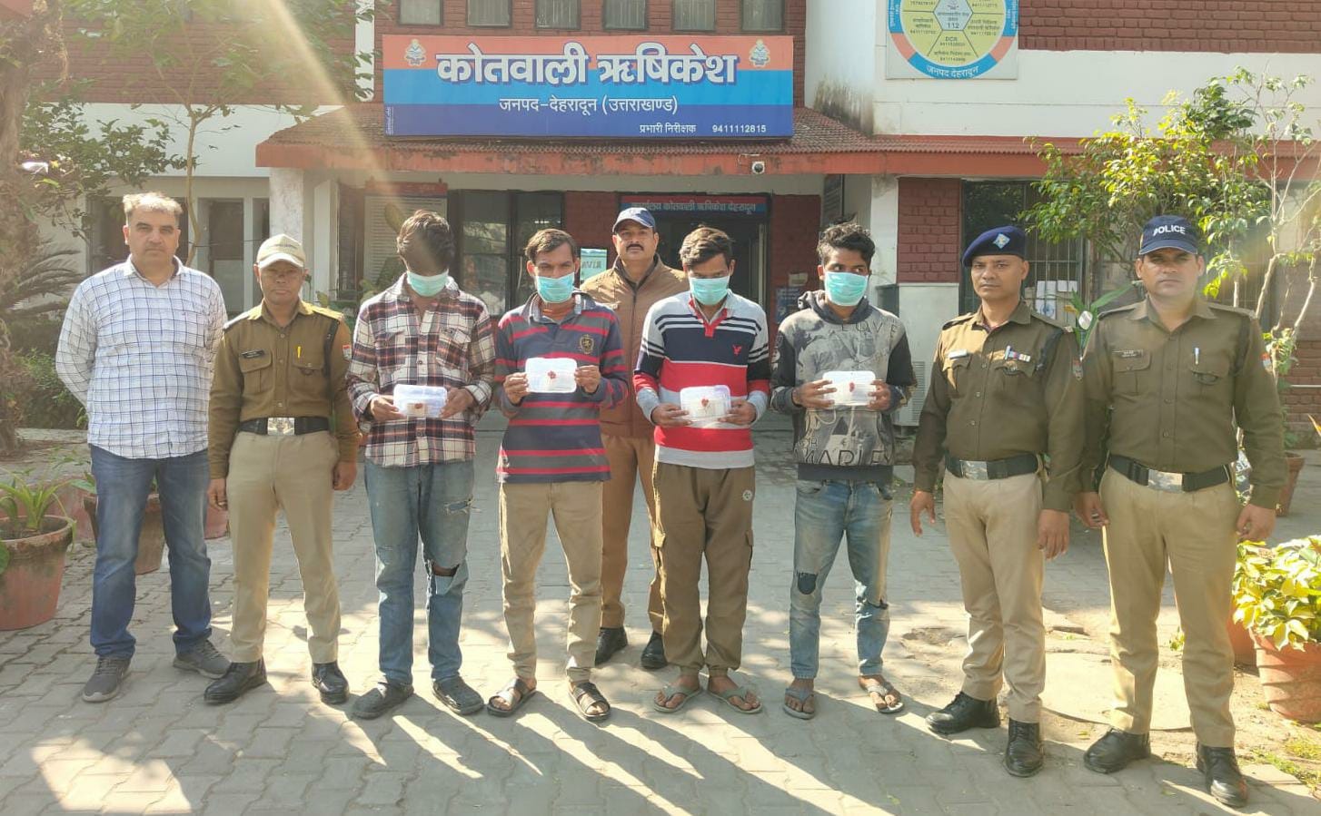 जानकारी के अनुसार बीते 18 नवम्बर को गुलाम रसूल पुत्र माम हसन, निवासी सात मोड गिजरेडा थाना ऋषिकेश जनपद देहरादून द्वारा कोतवाली ऋषिकेश में तहरीर देकर बताया गया था कि 17 नवम्बर को वह ऋषिकेश क्षेत्र मे दूध बेचकर सरकारी अस्पताल के पास बाल्मिकी बस्ती रोड पर सडक किनारे बैठकर दूध से प्राप्त पैसो को गिन रहा थे, तभी अचानक चार अज्ञात व्यक्तियों द्वारा उनके साथ मारपीट करते हुए उनके हाथ से पर्स व 10 हजार रूपये छीनकर भाग गये। पुलिस ने मामले में मुकदमा दर्ज कर लुटेरो की तलाश शुरू कर दी गयी। लुटेरो की तलाश में जुटी पुलिस ने कड़ी मशक्कत के बाद बीती रात उक्त लूट में शामिल चार लोगों अमन भण्डारी पुत्र पूरव सिंह भण्डारी, कैलाश पुत्र कुन्दन सिह, पंकज सिह पुत्र स्व. राजेन्द्र सिह व आकाश उर्फ गोलू पुत्र श्री आन्नाद मणी को एम्स जाने वाली रोड कोतवाली ऋषिकेश से लूटे गये 10 हजार रूपये के साथ गिरफ्तार किया गया। जिन्होने पूछताछ में बताया कि वह सभी दोस्त है तथा नशे के आदि है, नशे की पूर्ति के लिये उनके द्वारा आते जाते लोगो से सामान,मोबाइल व रूपये छीनाझपटी करते है। दिनांक 17—11—2025 को उन्होने सरकारी अस्पताल के पास बाल्मिकी बस्ती रोड पर सडक किनारे एक व्यक्ति से 10 हजार रूपये छीनकर मौके से फरार हो गये थे। पुलिस क अनुसार आरोपी पूर्व मे भी विभिन्न अपराधो मे संलिप्त रहे है जिनके खिलाफ कई मुकदमें दर्ज है।