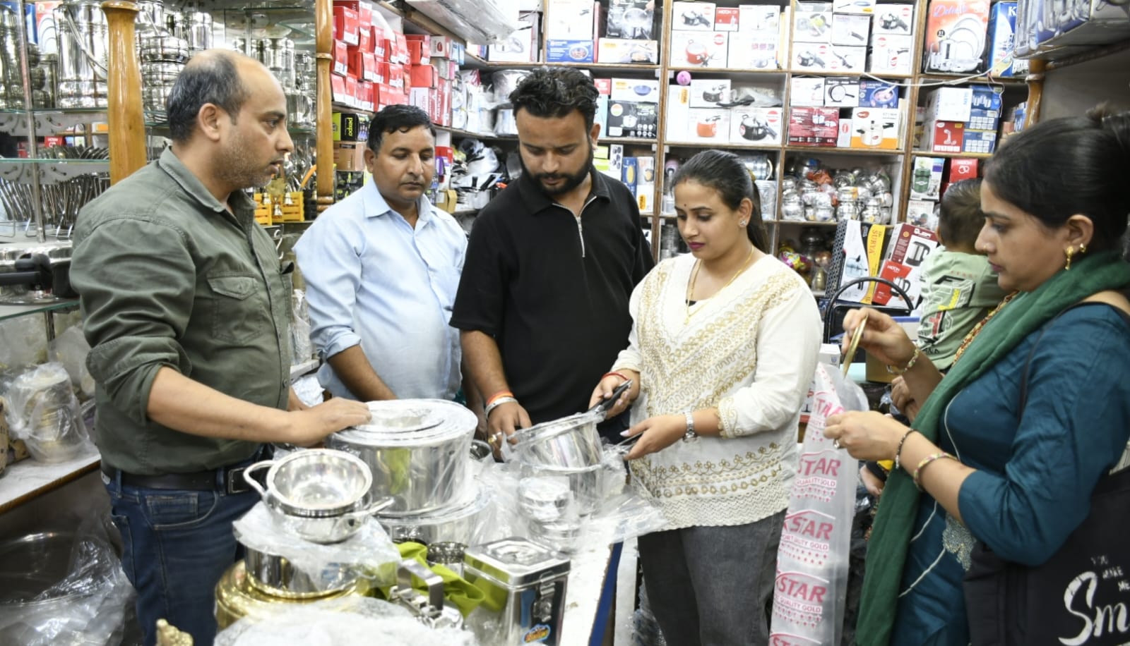 आज यहां सुबह से ही धनतेरस के अवसर पर शहर के समस्त बाजारों में लोगों की भीड लग गयी थी। खासकर बर्तन की दुकानों पर लोग खरीदारी करते हुए दिखायी दिये। आज के दिन लोग बर्तन व झाडू आवश्यक खरीदते हैं। जिसके चलते झाडू की दुकानों पर ग्राहकों का तांता लगा रहा। लोगों ने सुबह पहले घरों में साफ सफाई करने पश्चात बाजार का रूख किया। बाजार में भीड के कारण कई स्थानों पर जाम लगा रहा जिसके चलते पुलिस प्रशासन को भी काफी मशक्कत का सामना करना पडा। सुबह से ही लोगों की भीड बर्तनों की दुकानों पर लग गयी थी।
